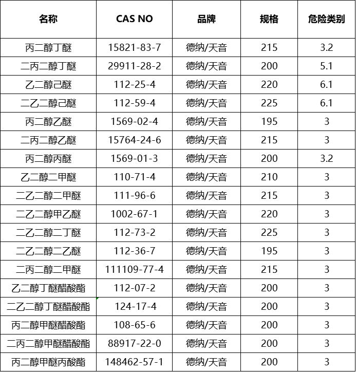 代理德纳/天音各类醇醚产品,库存充足,供应稳定。